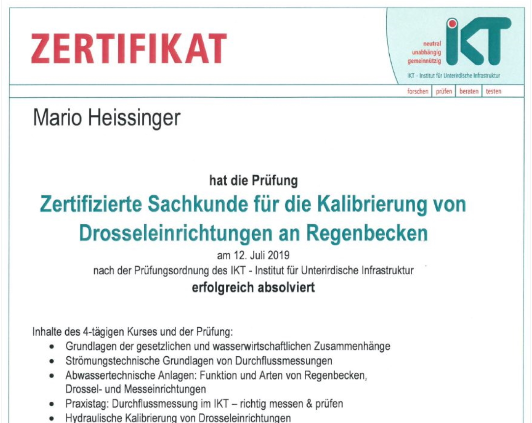 - der Überprüfung Ihrer Regenbehandlungsanlagen inkl. Drosselorganen